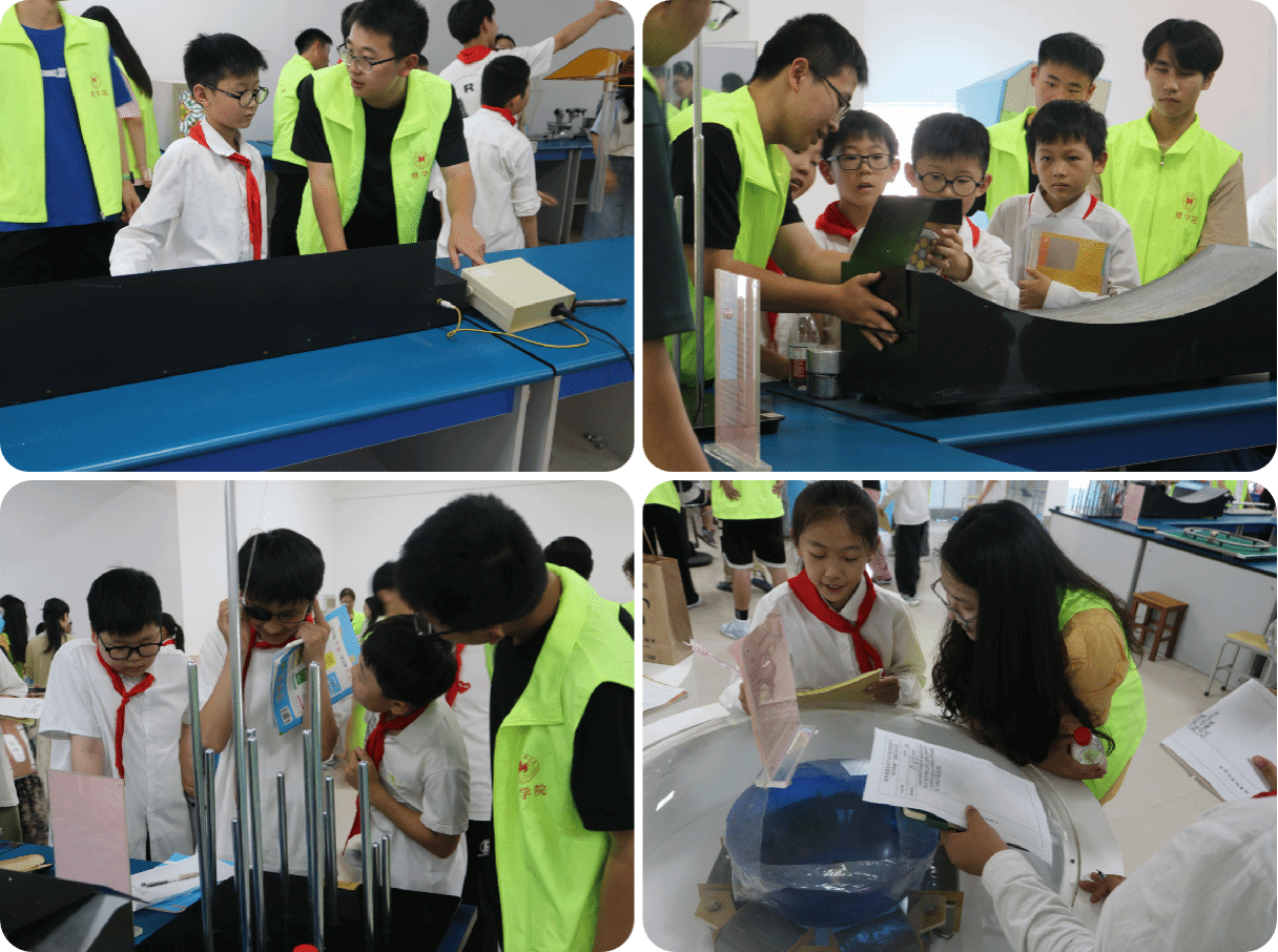 物理青少年科普教育基地、中小学科学教育实践活动基地和中小学劳动教育实践地基的社会职能,2024年5月14日下午,理学院精心策划了一场独具特色的物理科普活动,诚挚邀请莲花街小学的师生们共同走进理学院科技馆,共同感受物理学的神奇魅力。