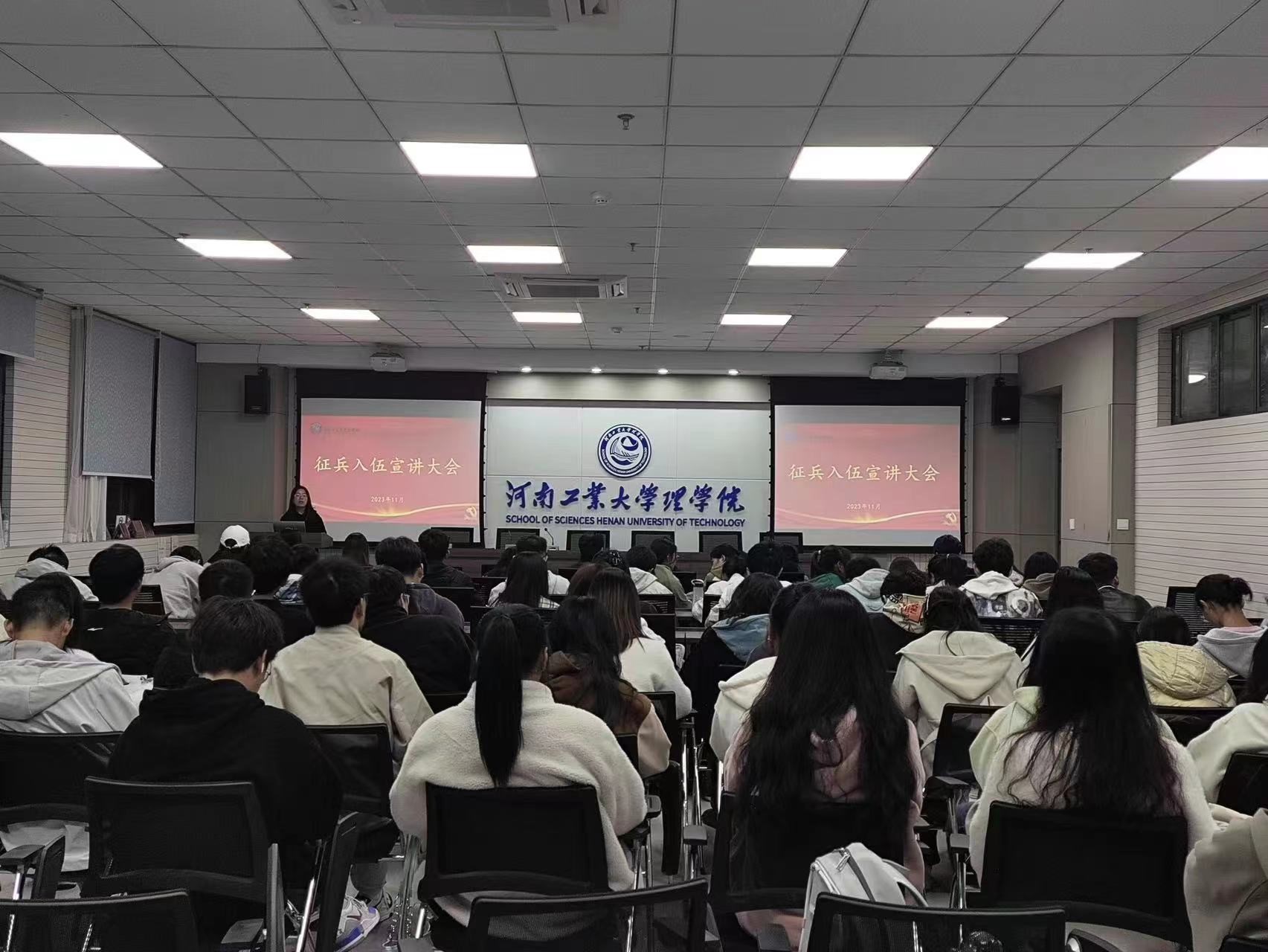 为进一步落实国家相关征兵工作要求,强化国防教育理念,11月17日下午,理学院在34号楼315会议室召开2023年下半年征兵政策宣讲暨动员会。学院党委副书记吴春阳、各年级辅导员以及有入伍意向的学生参加会议,动员会由院团委书记刘姗主持。