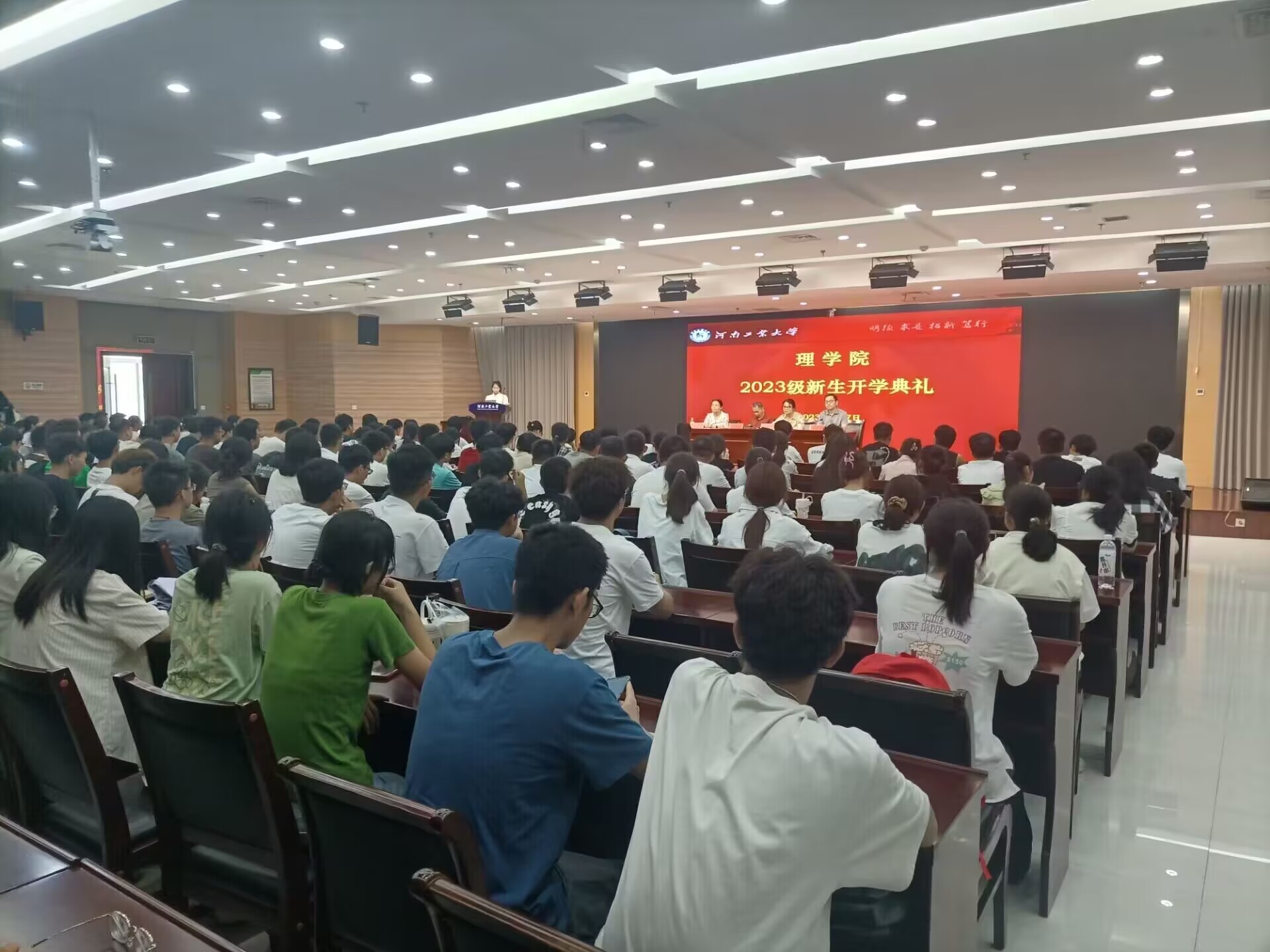 9月7日上午,理学院在行政楼D205报告厅举行2023级新生开学典礼。学院党委书记张宏伟、院长富笑男、副书记吴春阳、副院长曹建莉出席大会,学院全体辅导员和2023级新生参加了本次大会。典礼由吴春阳主持。