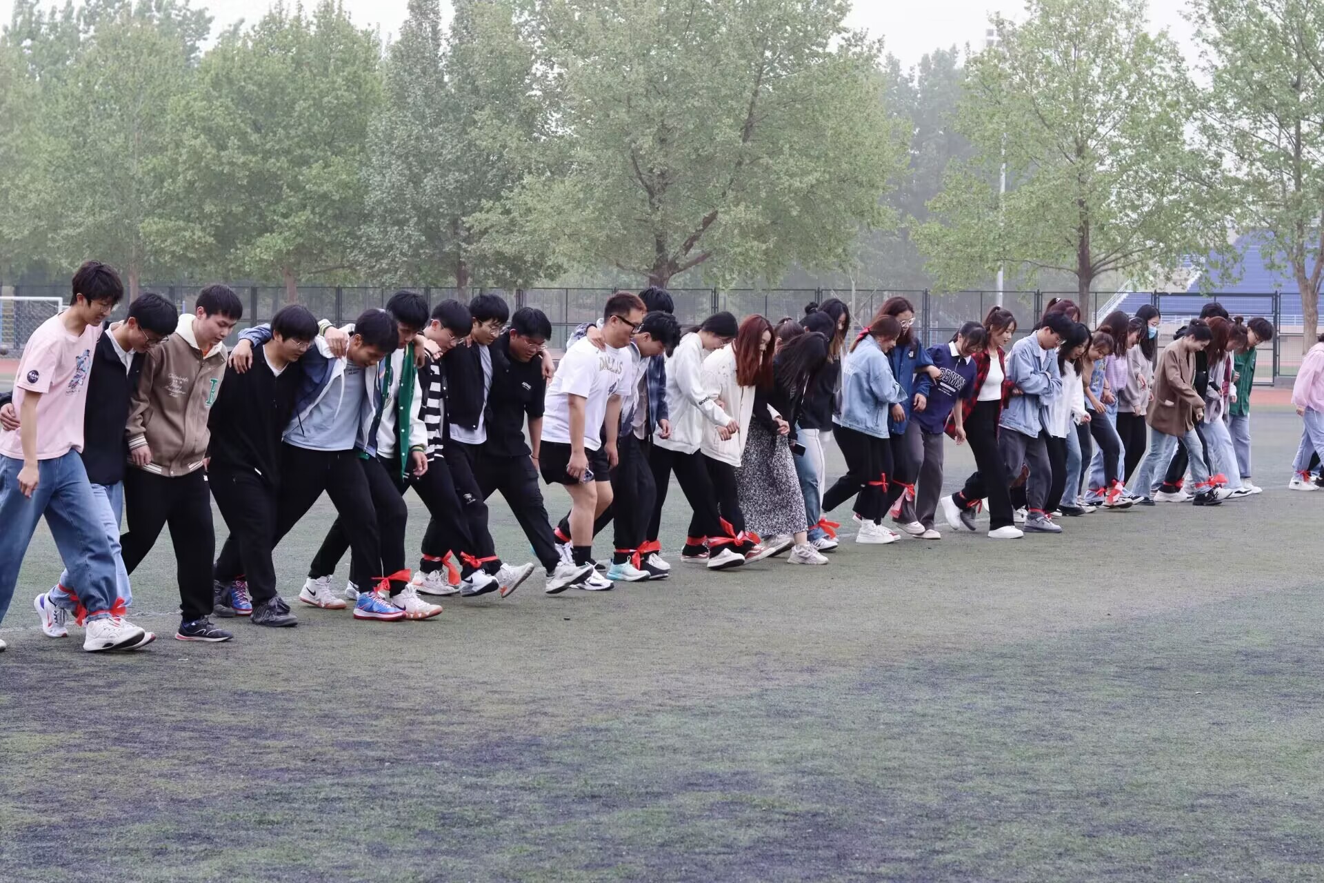 于4月11日在西操场开展“青春践行二十大,阳光心理伴我行”素质拓展活动。通过本次素拓活动,学生会成员们已经没有了最初的尴尬生疏,身心都得到了放松与治愈,彼此间也有了-定的默契。