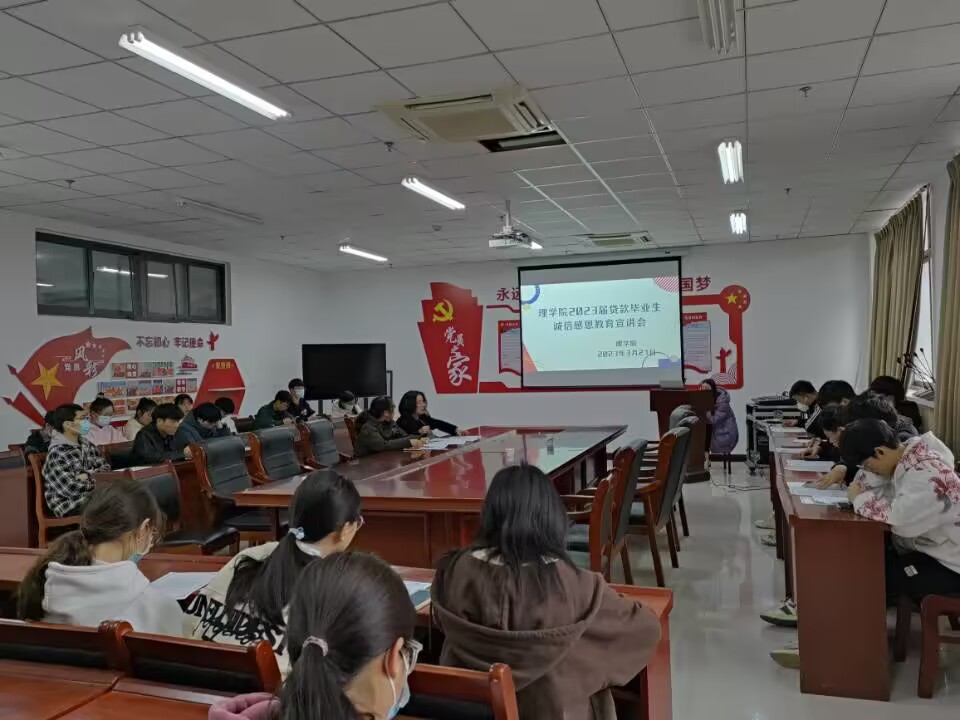 为贯彻落实国家助学贷款的相关政策,进一步强化大学生诚信意识,做好2023届贷款毕业生毕业确认及贷后管理工作。3月22日,理学院在实训楼中心308会议室召开2023届贷款毕业生毕业确认暨诚信感恩教育宣讲会。学工班主任赵洁,资助负责老师、资助助理及2023届贷款毕业生参加了此次会议。