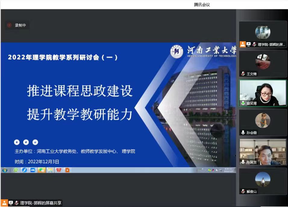 为深入学习贯彻党的二十大精神,全面实施“课堂教学质量提升年专项行动”,推进课程思政建设,由教务处、教师教学发展中心、理学院联合举办的“推进课程思政建设 提升教学教研能力”系列线上研讨会12月3日上午拉开帷幕。副校长陈复生出席会议,教务处、教师教学发展中心负责人、理学院全体教师参加会议。本次研讨会邀请3位国内知名专家和6位理学院优秀教师进行交流研讨。
