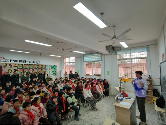 大学生物理科普团队走进邓州市冠军小学,开展了以“生活中的趣味物理”为主题的科普教育活动。本次活动旨在通过趣味科普激发乡村孩子的科学梦想,助力乡村科学教育发展。校党委副书记、工会主席周相寅到场观摩并指导。