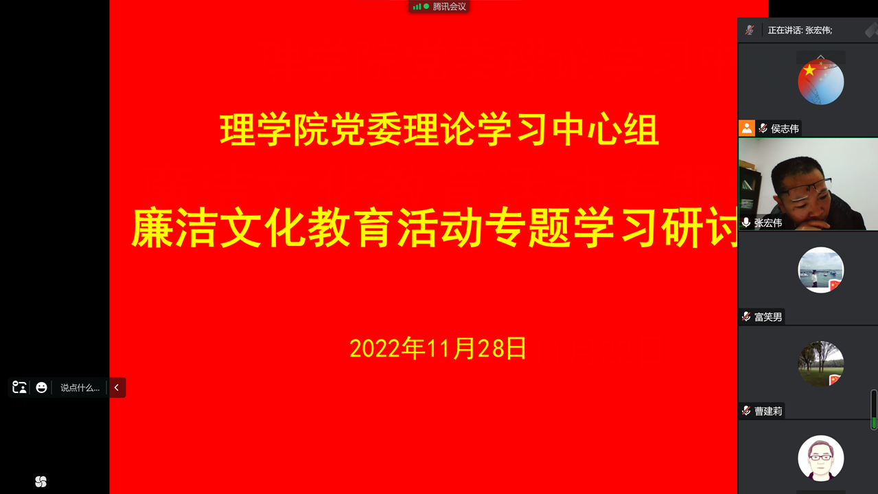 11月28日,51动漫 党委通过视频会议的方式,召开理论学习中心组专题学习会议。深入学习党的二十大报告中关于深化全面从严治党新的战略部署及新时代廉洁文化建设等有关内容。中心组全体成员参加,会议由院党委书记张宏伟主持。