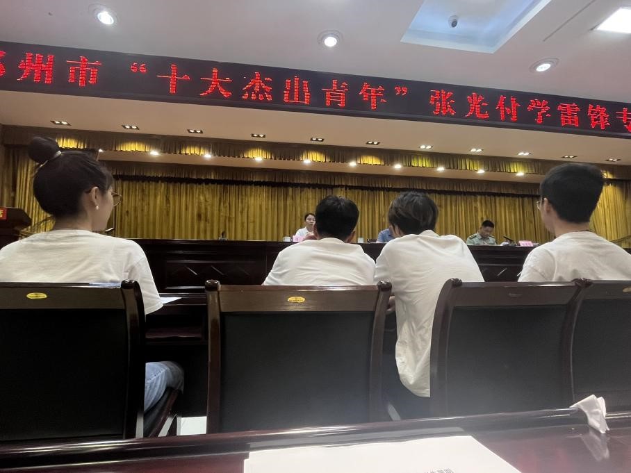 恰逢毛主席为雷锋同志题词60周年,小队成员得以听到张光付同志的学雷锋专题讲座,讲座主要讲述了他如何以雷锋精神为引成为一个无私奉献的优秀共产党员的成长与助人经历,令其受益匪浅。回望来时路,展望新征程,学习雷锋好榜样不仅仅是一代代中国人心中的成长回忆,也将指引着以后的千千万万祖国未来之花走向为党为民服务的康庄大道。雷锋精神真是历久弥新,每多了解一些,每重温一遍,对他的崇敬就多一分,对党的爱戴就多一分,投身国家建设的愿望就强烈一分。突破口广场就相对沉重一些,它是为了纪念在1948年党解放邓州时牺牲的革命先烈,但当小队成员走进广场,看到鲜花开放,小孩嬉闹时,却突然心有所感,顿然明白了战士们为何奋不顾身了,因为他们的心中有一种为了国家的未来、人民的幸福而拼命的信念,他们的牺牲换得了后世的光明灿烂。