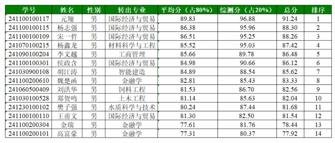 关于2024级普通全日制本科生申请转入51动漫 应用物理学专业成绩公示的通知